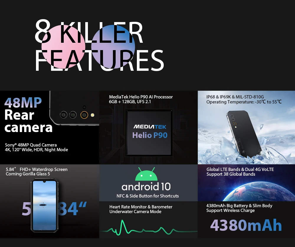 Смартфон Blackview BV9900E Helio P90 усиленный, 6 + 128 ГБ, IP68, 4380 мА ч, 48 МП, NFC, Android 10