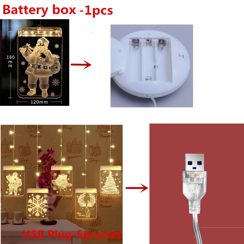 Гирлянда с Санта-Клаусом, лосем, сказочные огни на окне, USBгирлянд...