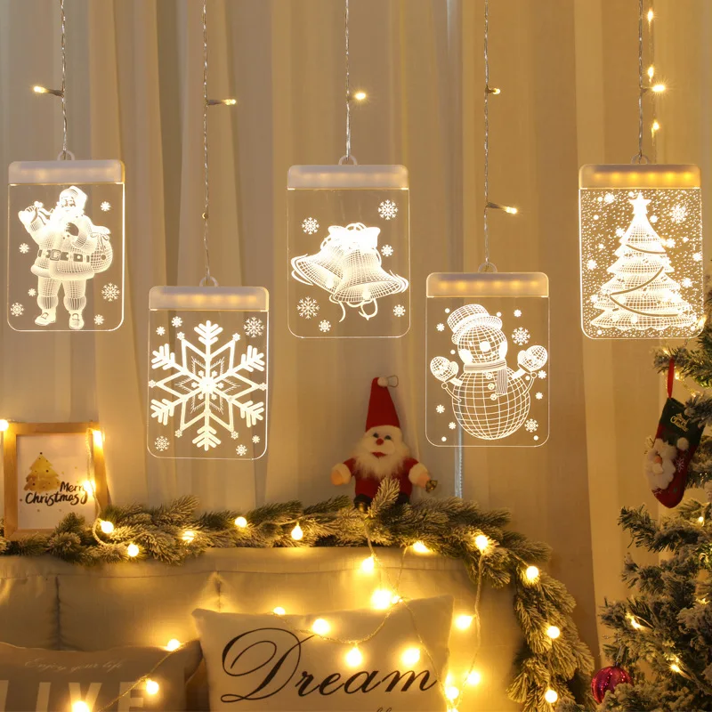 3D светодиодные Рождественские огни на окно, сказочные огни, Рождес...