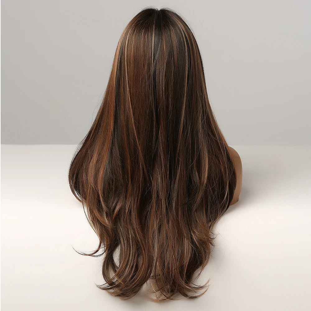 Feature 1Black Dark Brown Golden Highlight Wigs