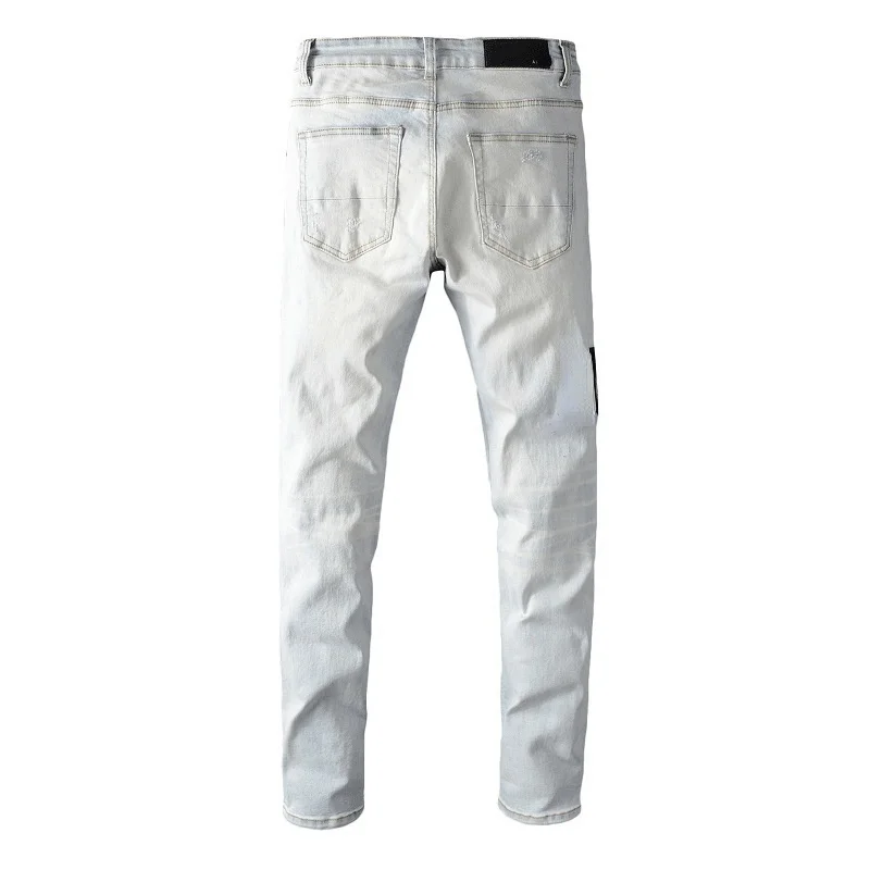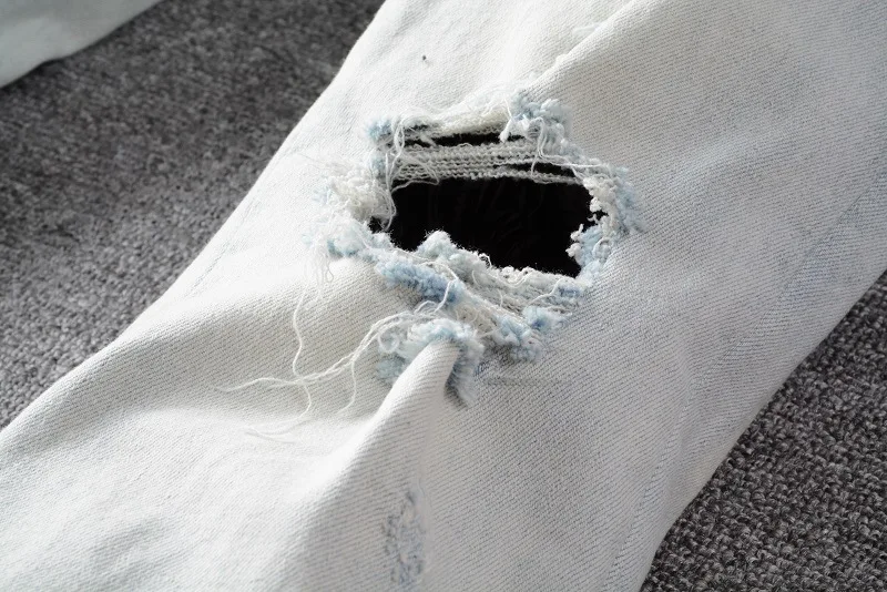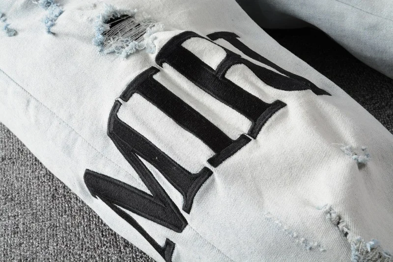 Джинсы мужские, с вышитыми буквами, рваные, зауженные, в стиле хип-хоп