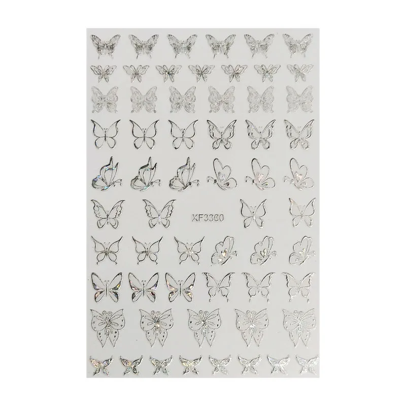 Объемные голографические наклейки для ногтей с бабочками, серебрист...