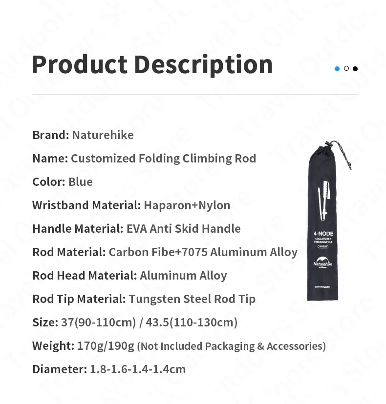 Naturehike 190g 4-секционные Углеродные волокна трость Открытый Сверхлегкий складной Углеродные волокна Алюминий Пешие прогулки треккинг PoleST12