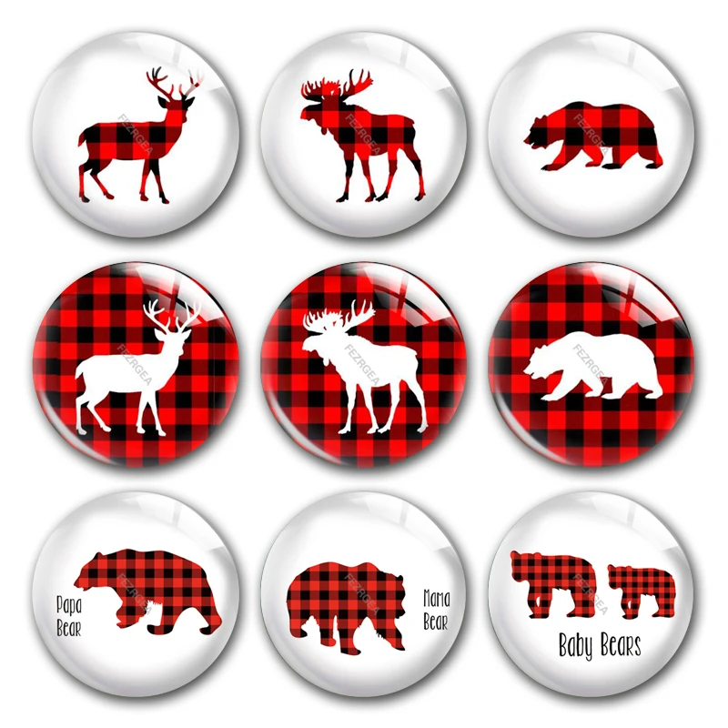 Стеклянные кабошоны ручной работы, с рождественским оленем, Буйволом, в клетку, с плоским основанием, для самостоятельного изготовления ювелирных изделий, фурнитура для аксессуаров