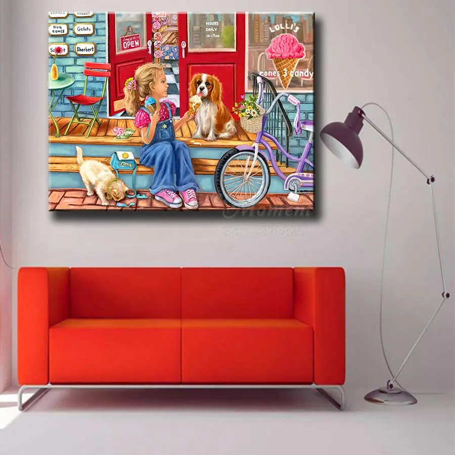 Ever Moment, алмазная краска, вышивка крестиком, Настенный декор для маленькой девочки и собаки, магазин мороженого, ручная работа, ручная работа, краска с бриллиантами 5L755
