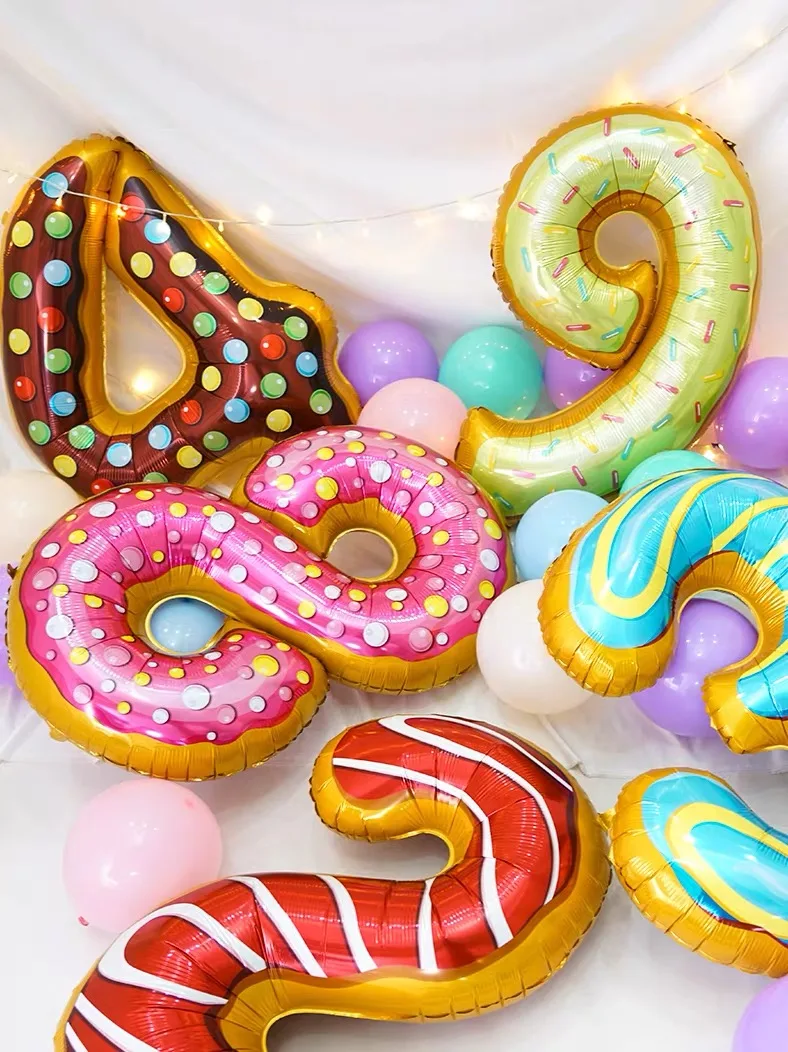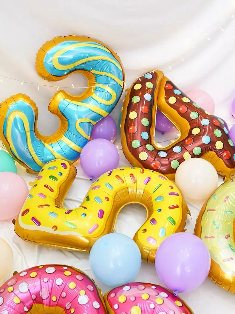 Цифровой Воздушный Шар Из Фольги в виде пончика, 32 дюйма, для фруктов, мороженого, гелиевых шаров, декоративные детские игрушки на день рождения, милый цифровой воздушный шар