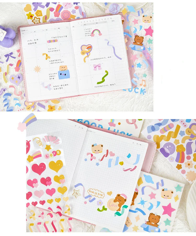 Красочная лента любовь воздушный шар мультфильм медведь милые наклейки этикетки наклейки для блокнота Diy декоративные наклейки Канцтовары