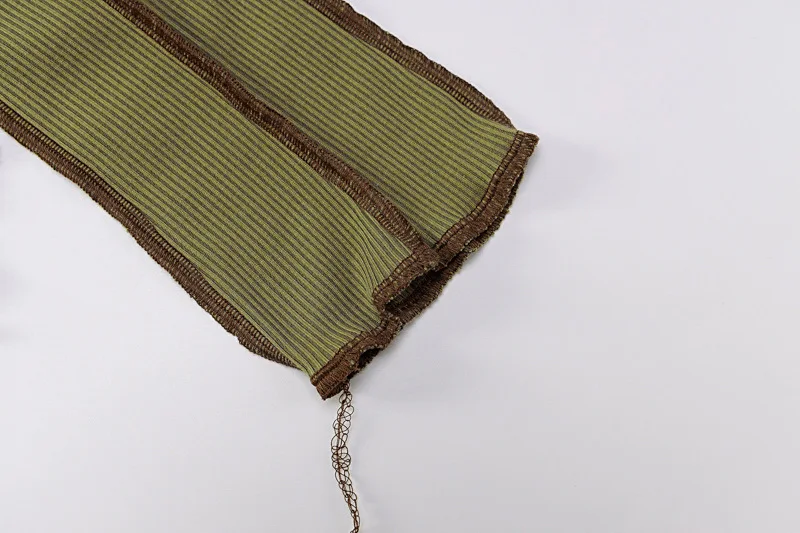Женский топ в рубчик, с открытой спиной и завязкой спереди, с длинным рукавом, на шнуровке, в стиле пэчворк, укороченный топ Y2K, 2020