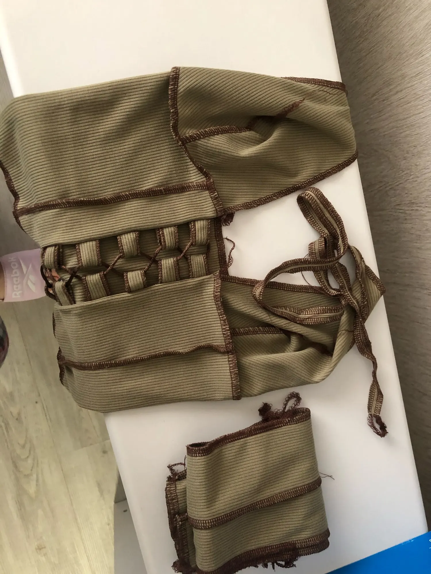 Haut magnifique, assemblée les lacets soit même mais permet donc d’ajuster la taille, fait un très joli décolleté, un peu peur que les coutures ne soient pas très solides cependant
