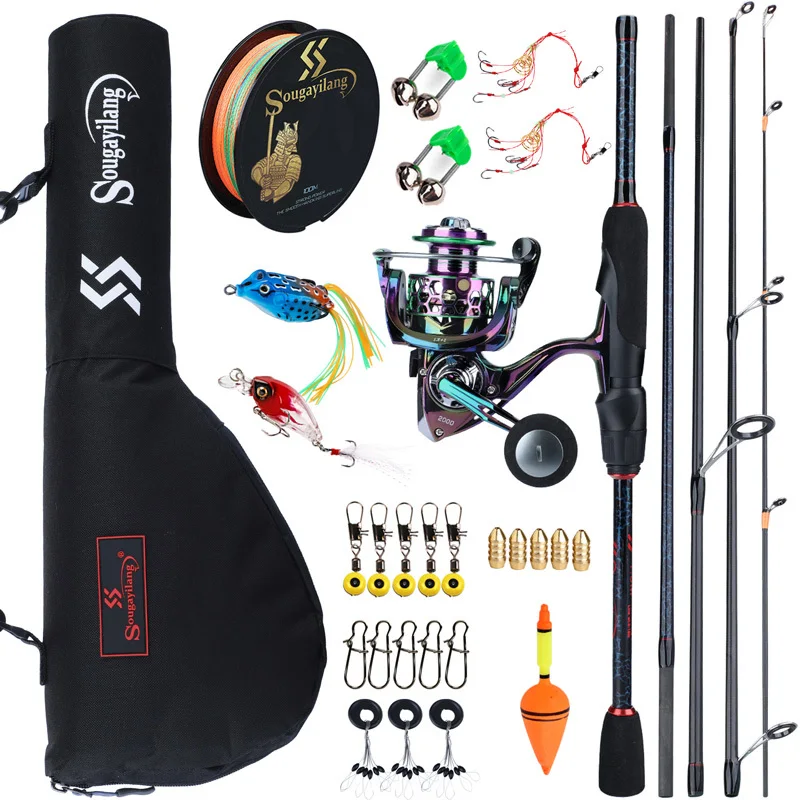 Рыболовная катушка для спиннинга Sougayilang, 1,8-2,4 м, с наживкой, леской и сумкой для переноски, для путешествий и рыбалки на открытом воздухе