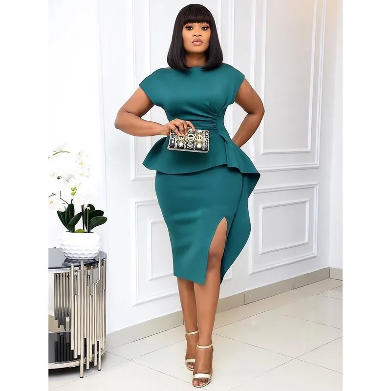 Сексуальное облегающее платье с коротким рукавом, платье с разрезом на бедрах, вечерние платья для мероприятий, модные офисные женские платья 2020, африканские платья для женщин размера плюс