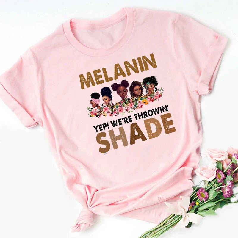 Женская футболка с рисунком Я меланин королева, футболка черного цв...