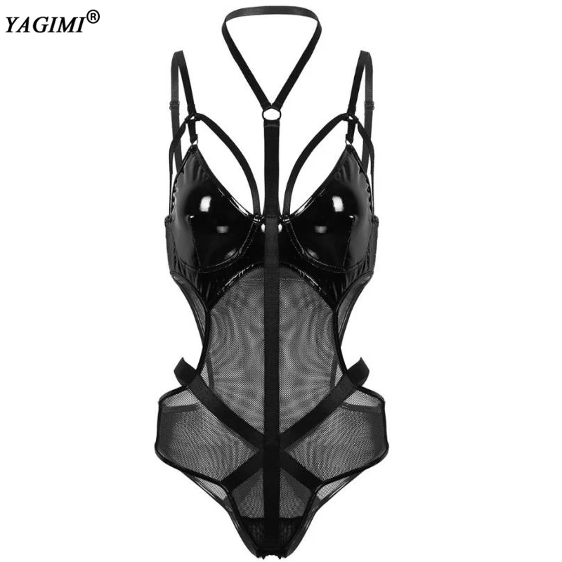 Эротическое нижнее белье YAGIMI, кожаное Сетчатое, сексуальное нижнее белье, Порно боди, корсет на молнии, Lenceria Erotica Mujer Sexi, сексуальное нижнее белье