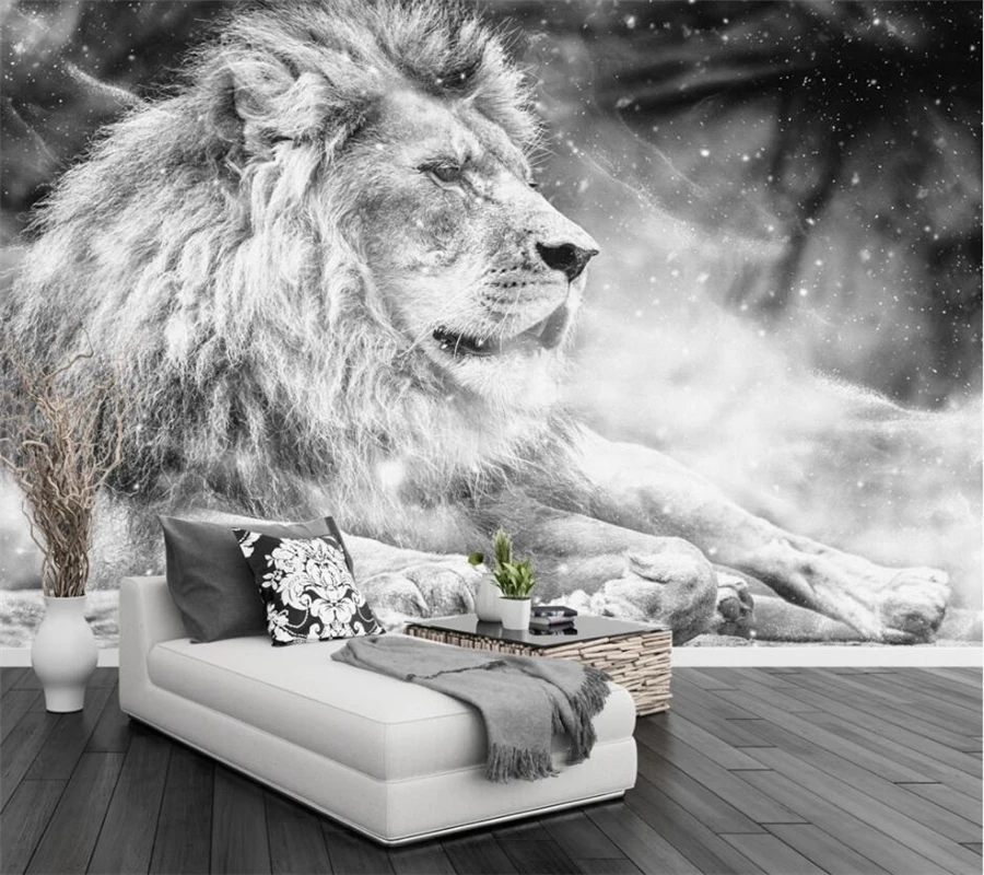Фотообои на заказ, 3D Черно-белые, для гостиной, спальни, телевизора, фон для стен, современный минималистский стиль, фотообои для отеля, фотообои со львами