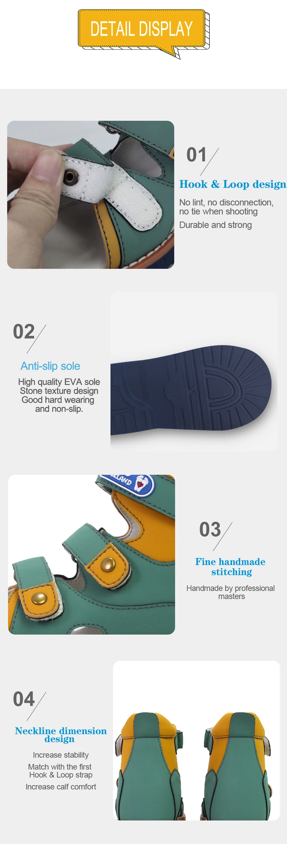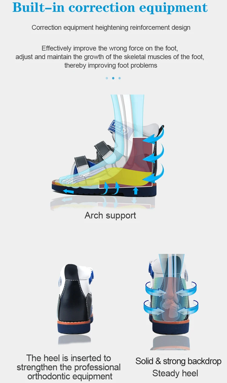 Исправьте деформацию ног, чтобы помочь здоровому росту суставов детских ног.> 2. Каковы особенности ортопедической обуви?1) Прочная и прочная удлиненная задняя крышка стабилизирует стопу в правильном положении.2) мягкие внутренние воротники обеспечивают гладкий контакт кожи с краями обуви во время движения.3) Арка поддержки стельки и Томас пятки подошвы, чтобы дать поддержку стопы.4) застежка на липучке плотно фиксирует ноги внутри обуви> 3. Каковы функции ортопедической обуви?Для профилактики и лечения ортопедических аномалий. Для предотвращения и исправления детской плоскостопия, лапки, стопа с вальгусной деформацией, супинатором, пронатором, клубной стопой, ногой X/O и т. д.> 4.подходит ли для ортопедической обуви нормальная стопа?Да, нормальные здоровые ноги также подходят для ношения ортопедической обуви. Ортопедическая обувь очень важна для первых шагов