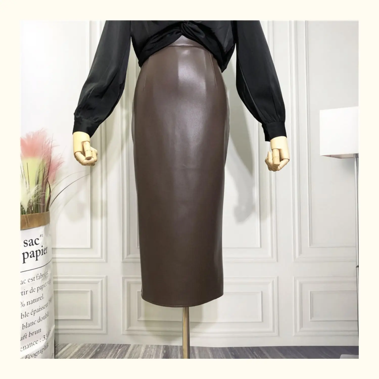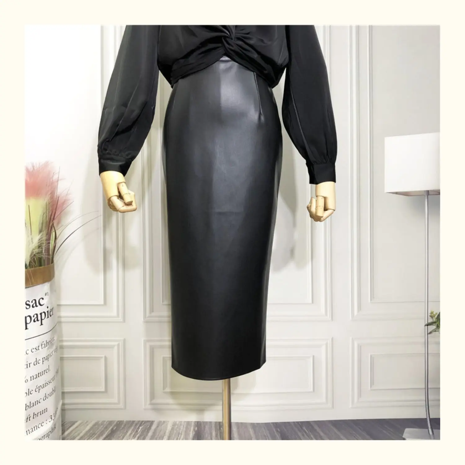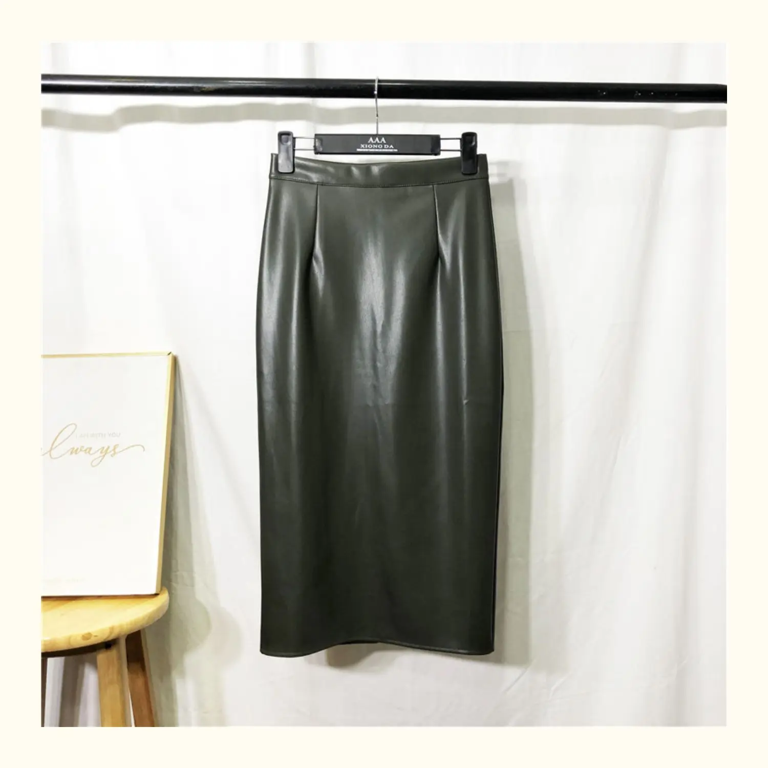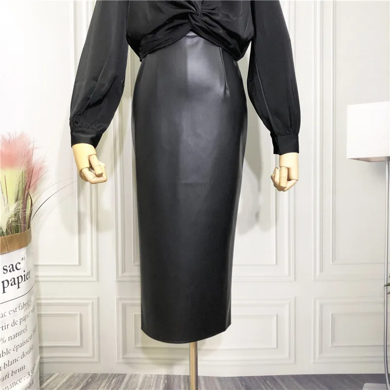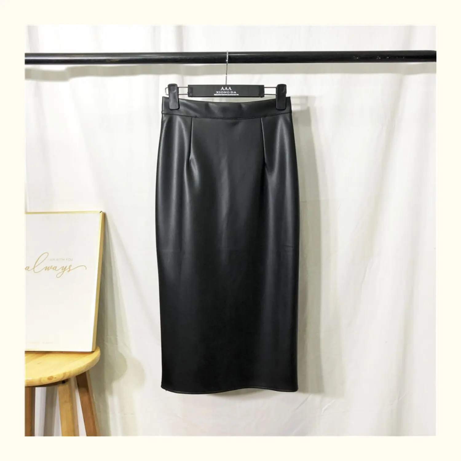 Юбка женская из искусственной кожи, до колен, с высокой талией, с разрезом, для офиса, Осень-зима, узкая юбка-карандаш