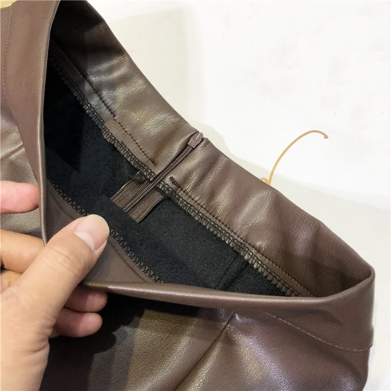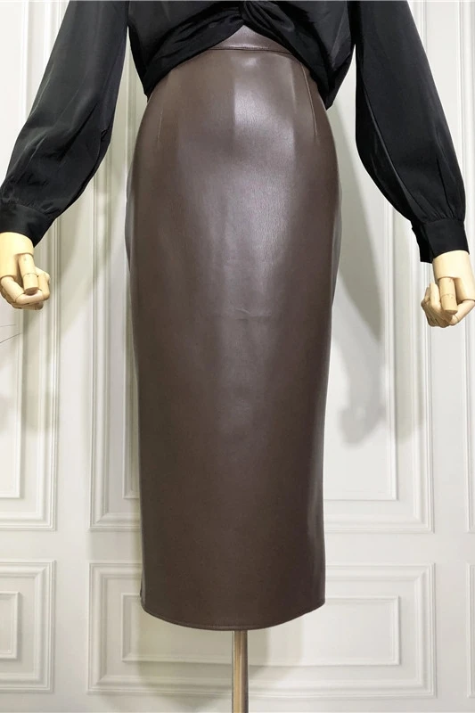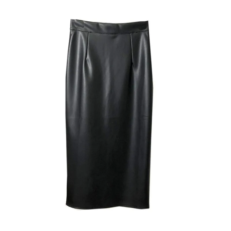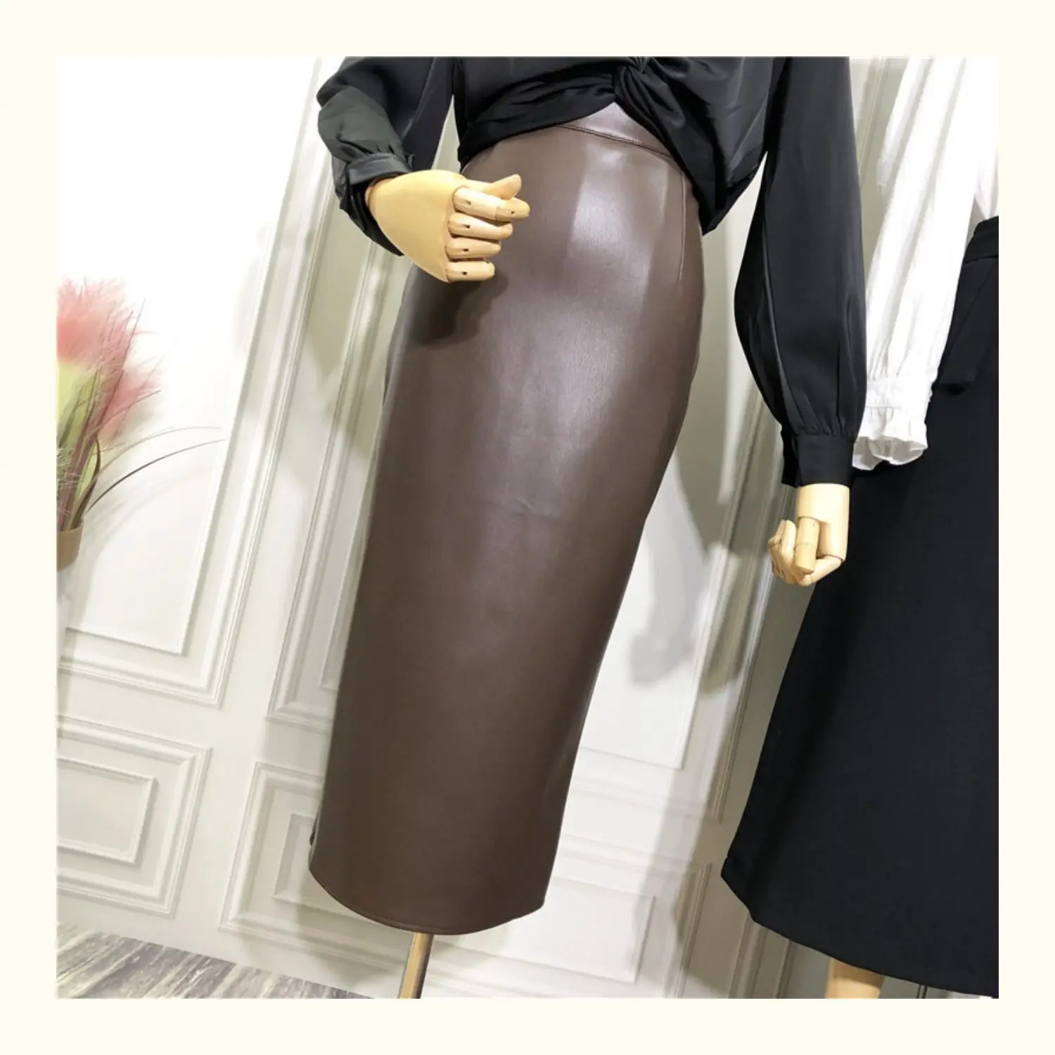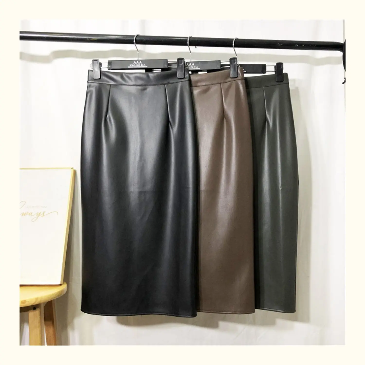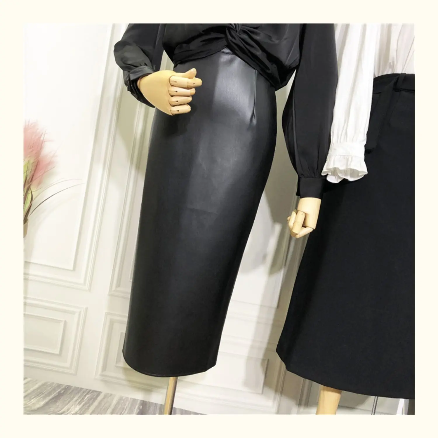 Юбка женская из искусственной кожи, до колен, с высокой талией, с разрезом, для офиса, Осень-зима, узкая юбка-карандаш