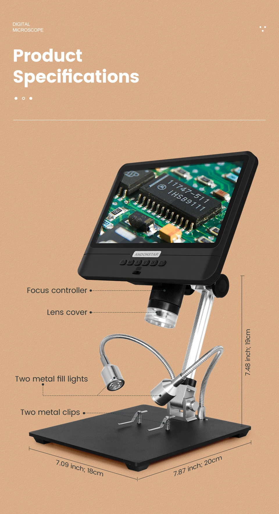 Микроскоп Andonstar AD208, Регулируемый ЖК-дисплей 8,5 дюйма для пайки, цифровой микроскоп, черный, 1080P, прибор для пайки