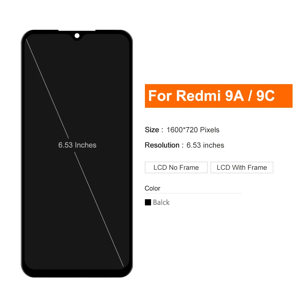 Оригинальный ЖК-дисплей 6,53 дюйма для Xiaomi Redmi 9A, ЖК-дисплей с сенсорным экраном и дигитайзером в сборе с рамкой для Xiaomi Redmi 9C 9 C LCD