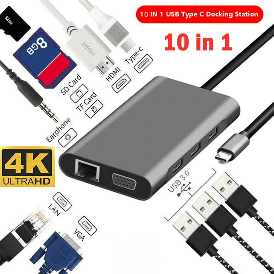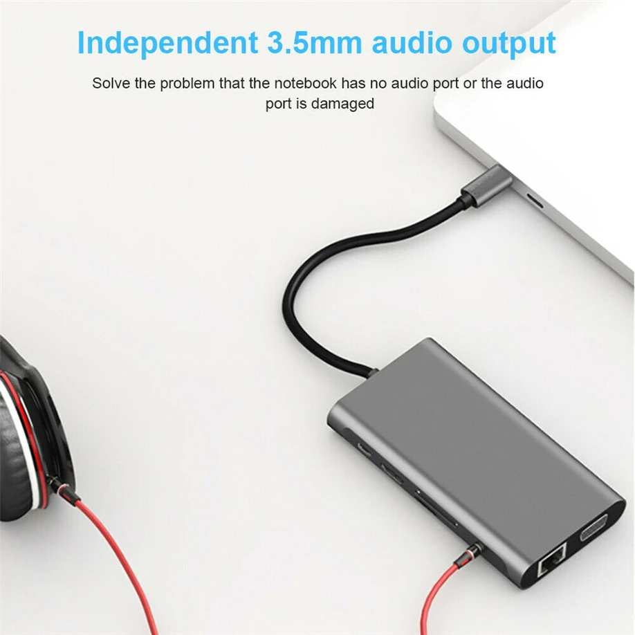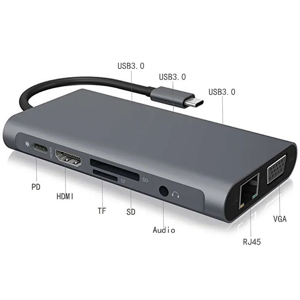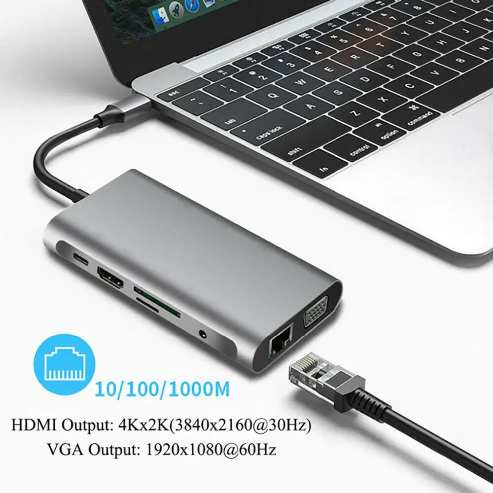 USB-хаб 11 в 1 с портом USB Type-C на HDMI, совместимый с USB 3,0