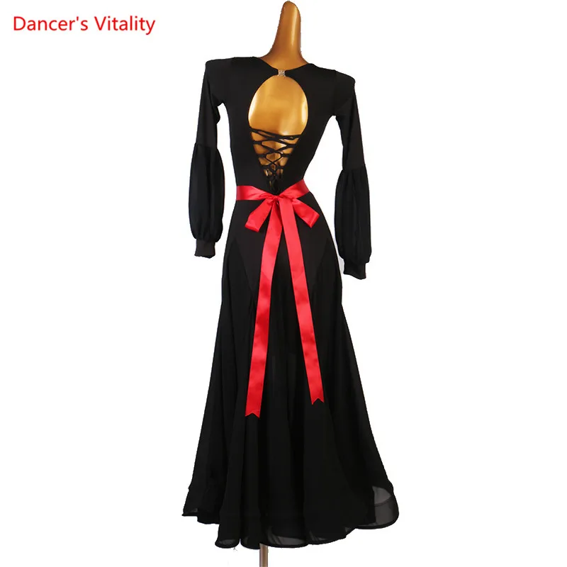 Платье для бальных танцев, женское, взрослое, детское, темпераментное, с открытой спиной и широкой юбкой, одежда для профессиональных представлений и тренировок
