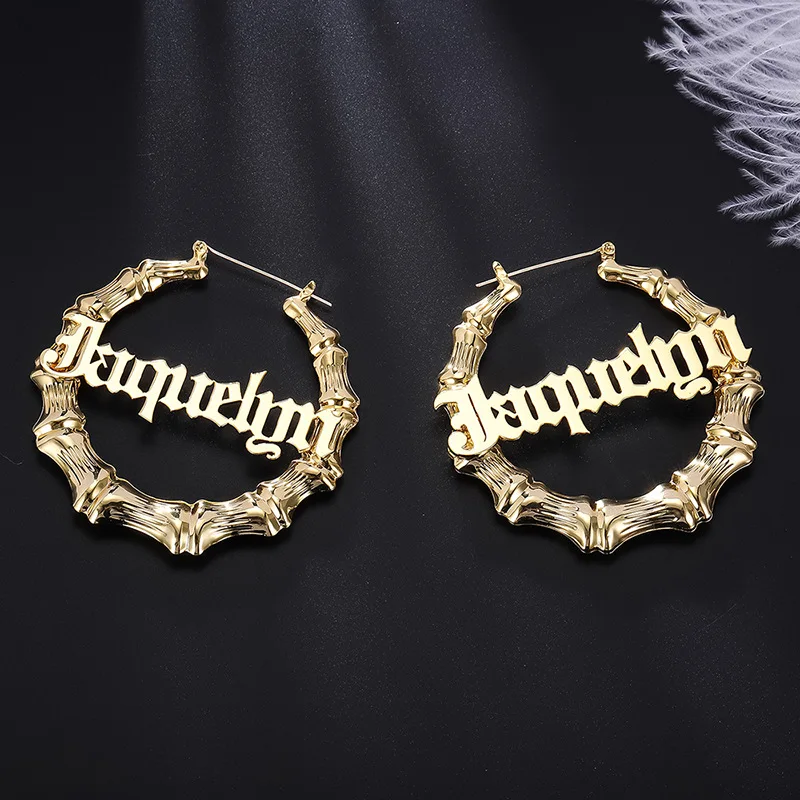 Серьги-кольца из нержавеющей стали 2020, с именем на заказ, в БАМБУ...