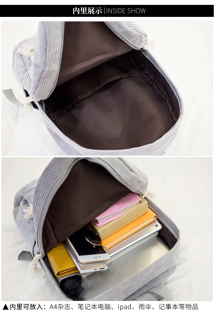 Женский вельветовый рюкзак из мягкой ткани в полоску для девочек-подростков