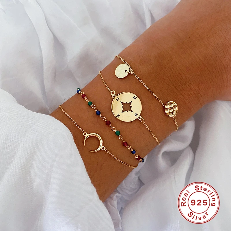 Женский Регулируемый браслет с бусинами CANNER, модный браслет из 925 стерлингового серебра серебристый компас пробы, ювелирные изделия, браслеты