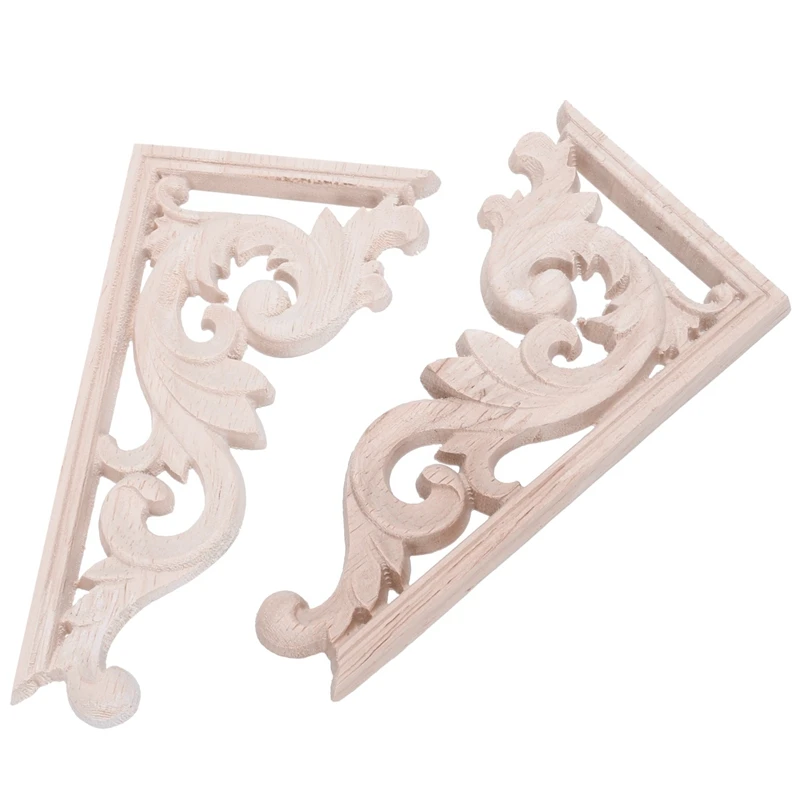 WSFS Горячие 2 шт левый + правый (каждый 1 шт) винтажный деревянный резной уголок Onlay Мебель Настенный декор Неокрашенная рамка аппликация