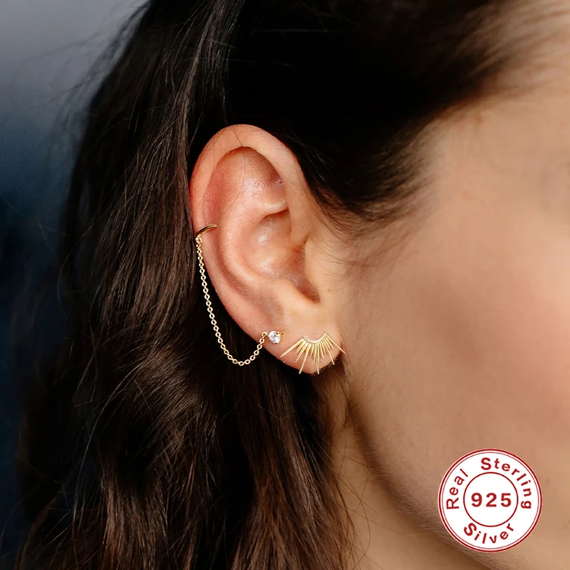 Женские серьги-пусеты, 925 пробы, Серебряная линия, солнцезащитные лучи, серьги-гвоздики, ювелирные украшения, женские серьги, W4