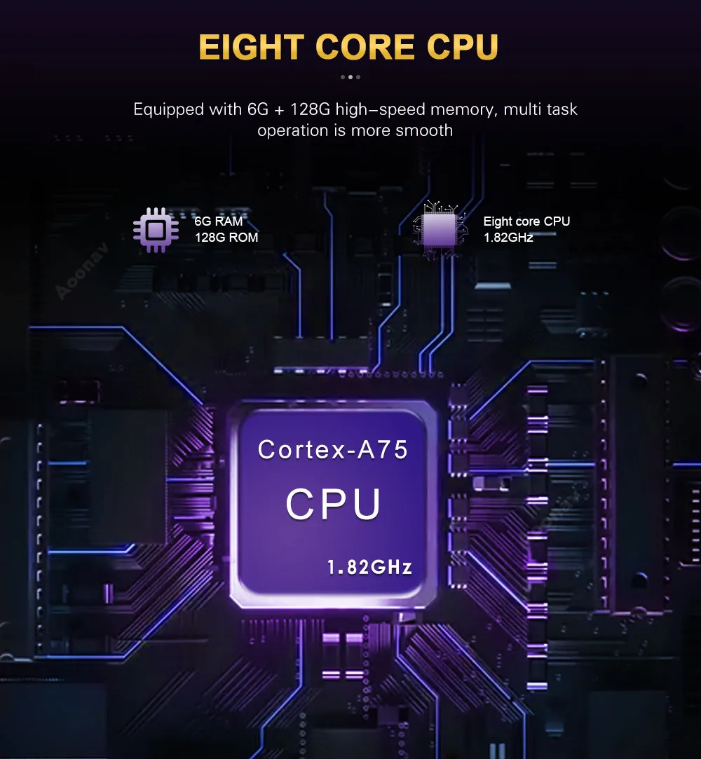 Основная частота: восемь ядер 1,8 ГГц (двухъядерный процессор ARM Cortex A75, шесть ядер ARMCortex A55 )"