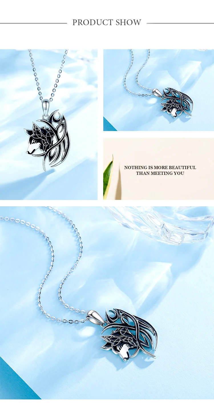 Ожерелье Eudora D604 из стерлингового серебра 925 пробы с черным волком, символ норвежский викинг войны, винтажная Подвеска для мужчин и женщин