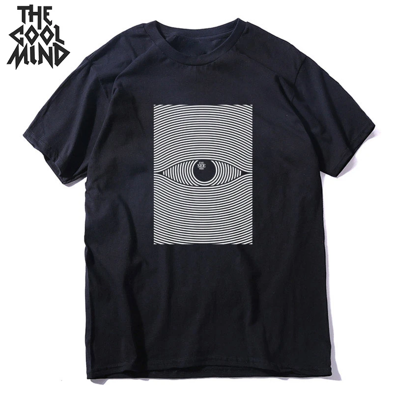 Уличная одежда COOLMIND из 100% хлопка, крутая Мужская футболка с принтом глаз, повседневная мужская футболка с коротким рукавом, свободная футболка с круглым вырезом, мужские футболки, топы