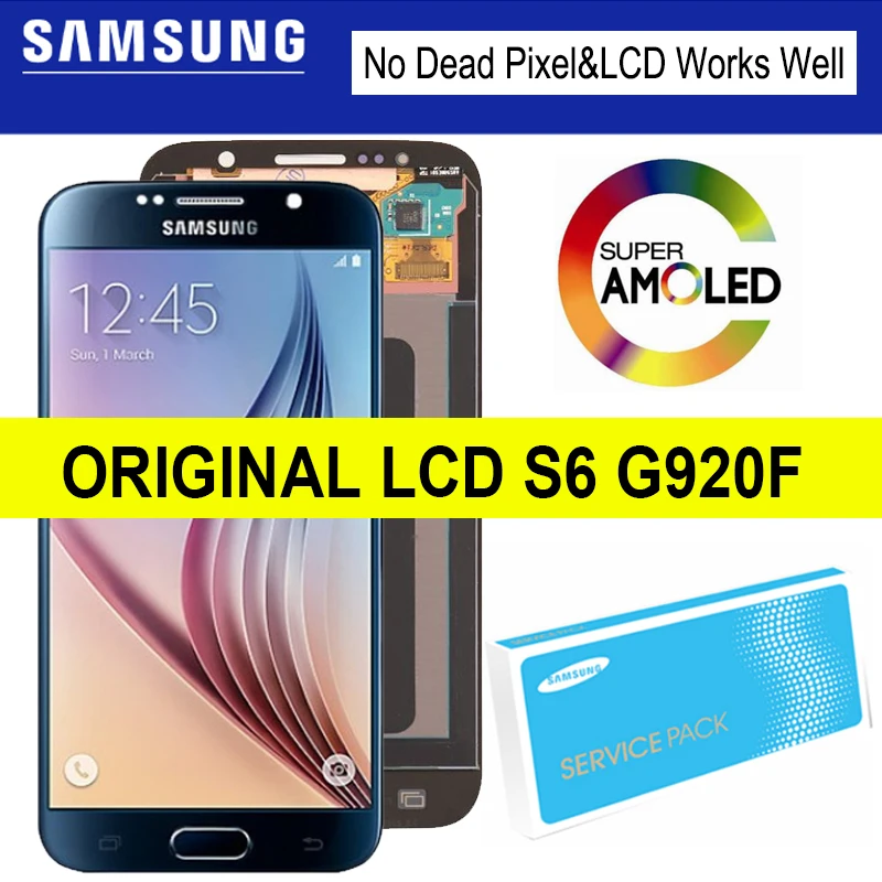 Дисплей Super Amoled для SAMSUNG Galaxy S6 G920G920F, ЖК-дисплей с сенсорным экраном и дигитайзером, с деталями для ремонта, синийбелыйзолотой