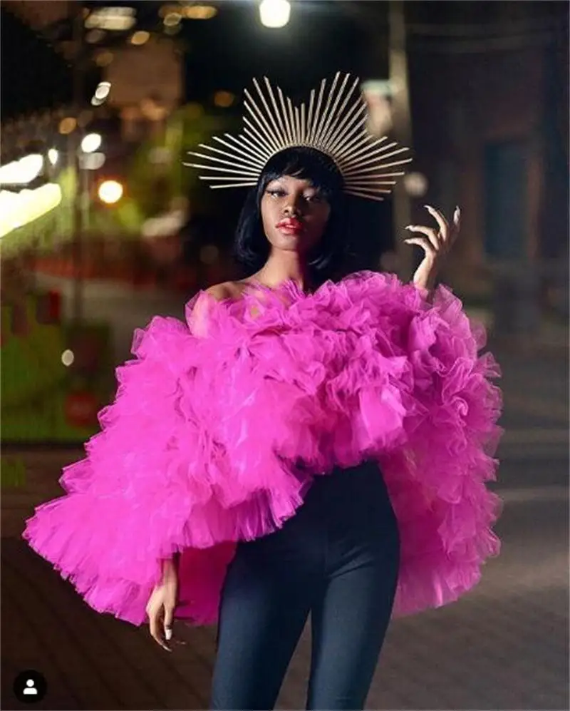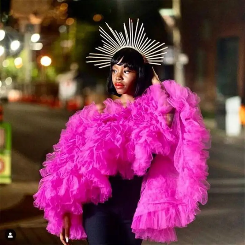 Шикарная Fuchisa пышная блуза из органзы с длинными рукавами, рубашки для женщин 2020, пышные фатиновые топы с оборками для официальных вечеринок, ярко-розовые