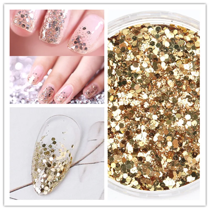 Гель-лак для ногтей, блестки, цвета шампанского, серебристого, золотистого цвета, разные серии, блестящий порошок, пудра с пайетками, для украшения ногтей