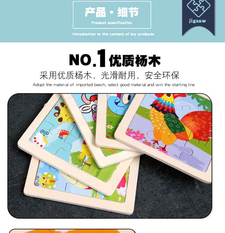 Деревянные Детские пазлы, 16 шт., обучающие и развивающие игрушки, ...