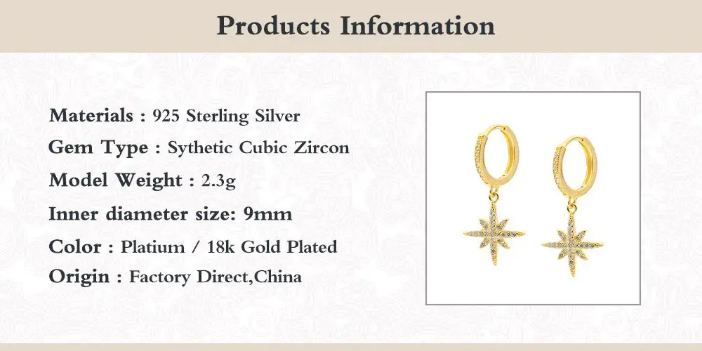 Женские серьги с восьмиугольной звездой, из серебра 925 пробы