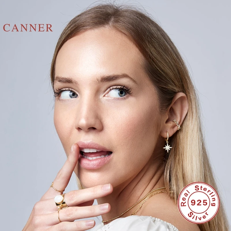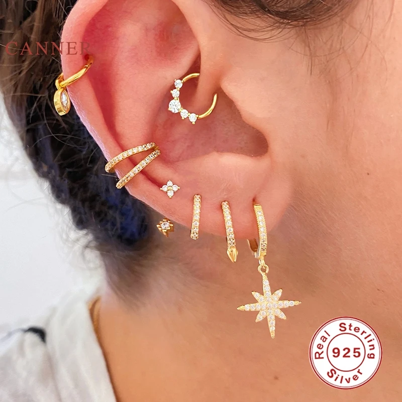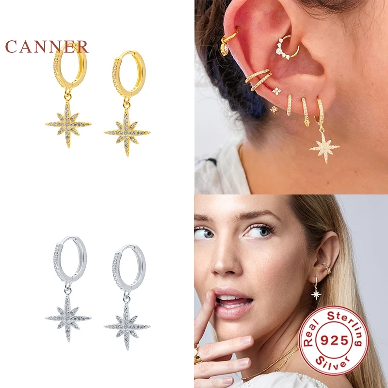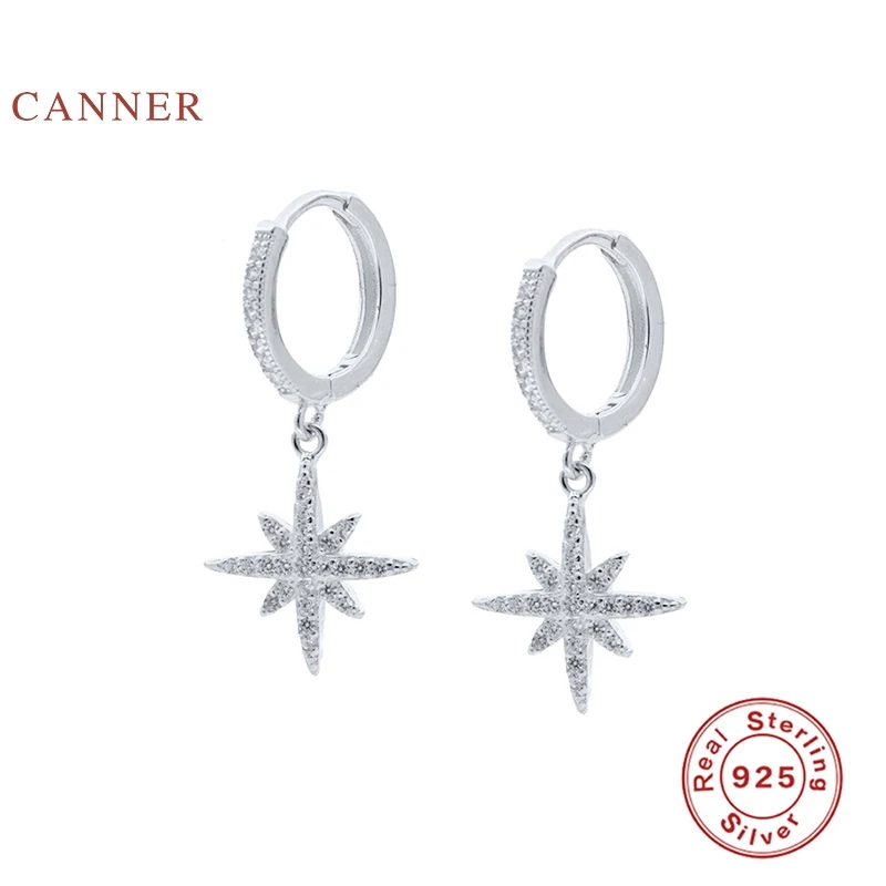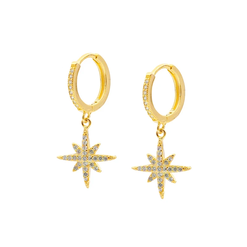 Женские серьги-пусеты из настоящего серебра 925 пробы, восьмиугольные серьги со звездами, обручи с цирконием, корейский Серебряный ювелирное изделие из золота