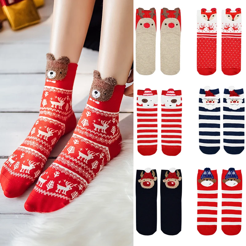 Носки для девочек и женщин, 1 пара, рождественские праздничные прин...