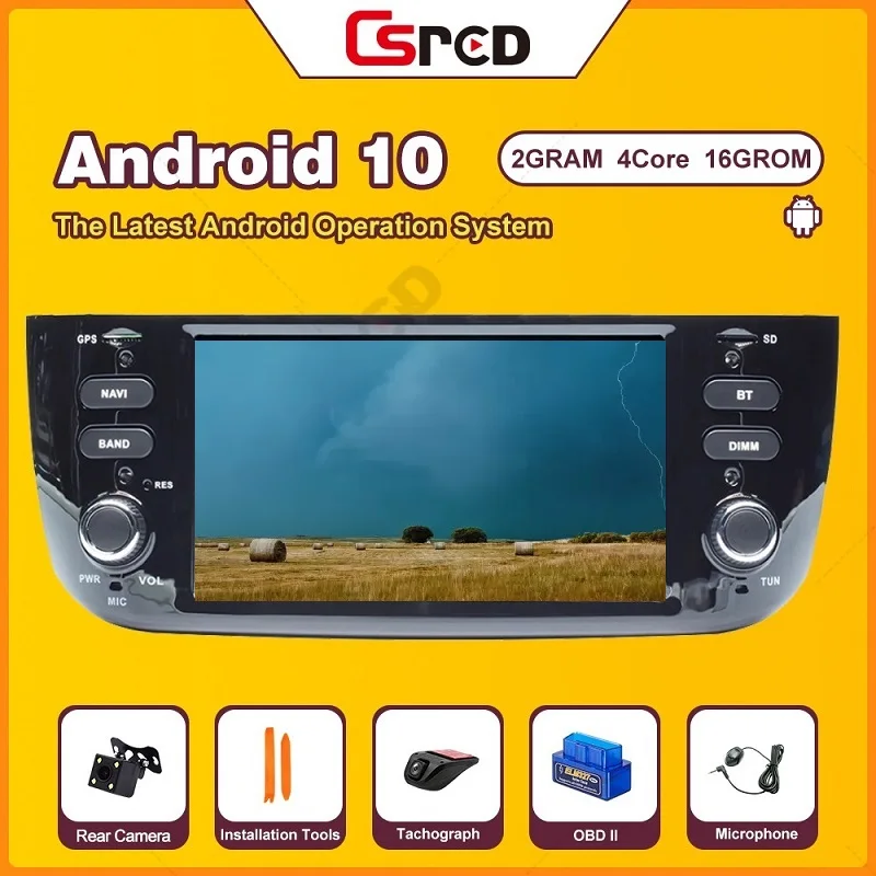Автомобильный мультимедийный плеер Csred, Android 10, для Fiat Linea Punto EVO 2012, 2013, 2014, 2015, GPS-навигация, радио, стерео