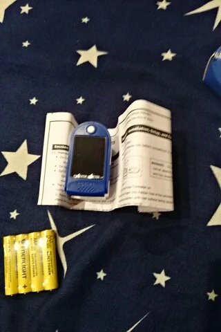 быстрая доставка. работает от двух мизинчиковых батареек. брала на работу. сравнила его с другим пульсоксиметром, работает точно. рекомендую. очень дешево.