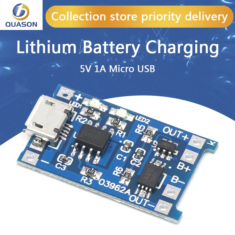 Зарядная плата 100 шт.лот, модуль зарядного устройства для литиевой батареи 18650, 5 В, 1 А, Micro USB, с двойной функцией защиты