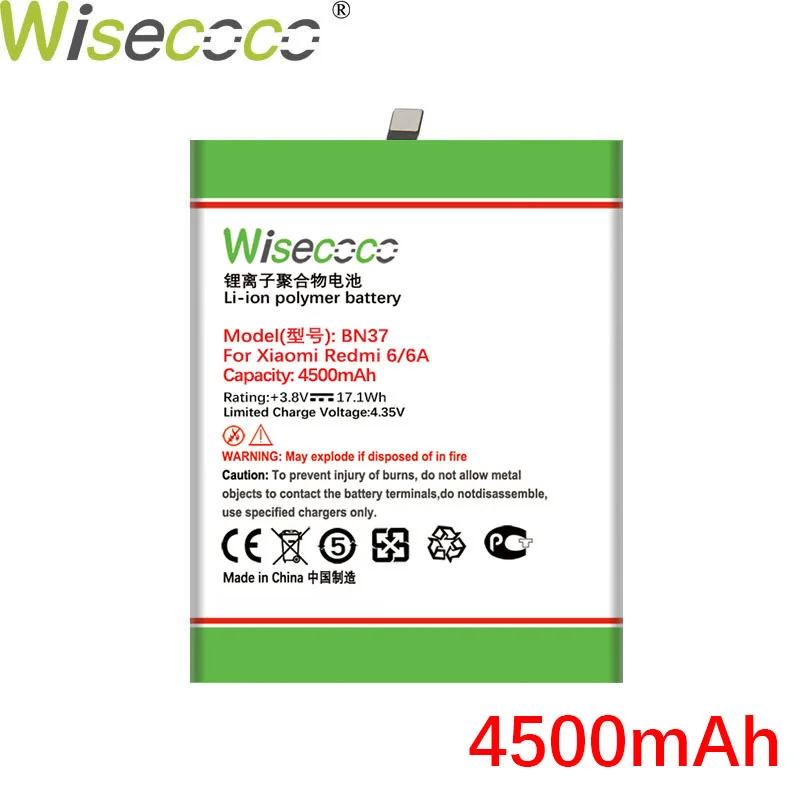 Аккумулятор WISECOCO BN37 4500 мА ч, для Xiaomi Redmi 6, 6A, мобильный телефон, в наличии, высокое качество, номер отслеживания