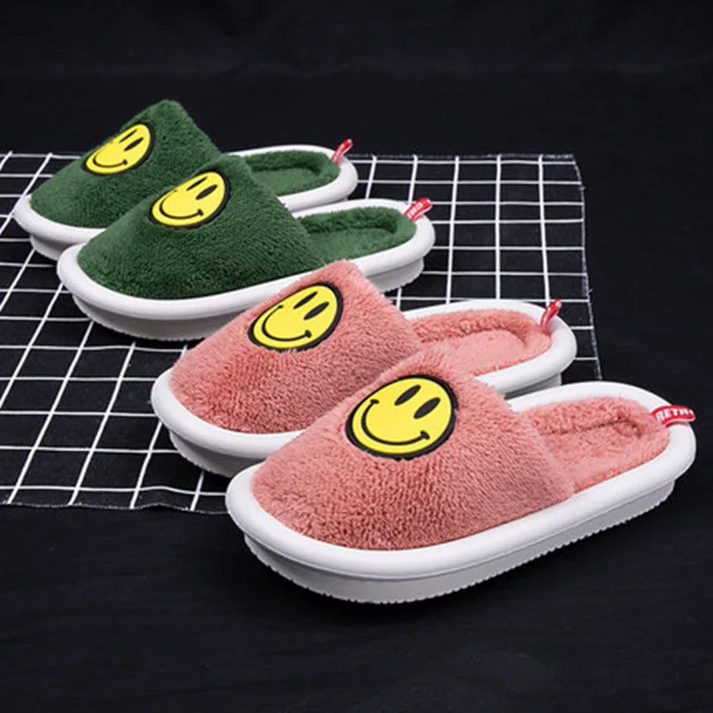 ✬⏰⏰Если вы не знаете, как выбрать, пожалуйста, свяжитесь с нами. ♈Описание продукта: Розовые женские домашние тапочки со смайликом, пушистые домашние тапочки, милые Мультяшные тапочки для спальни, женские Тапочки