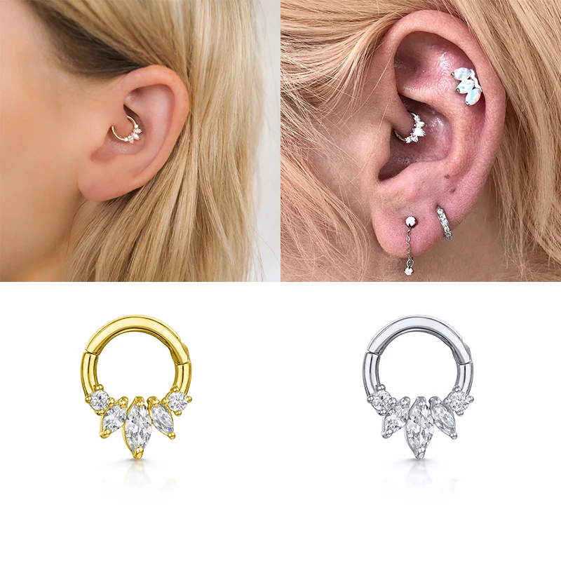 Серьги-кольца для пирсинга женские с кристаллами AIDE 925 пробы, се...