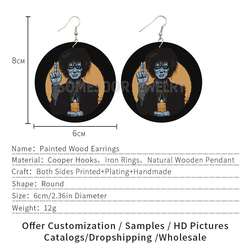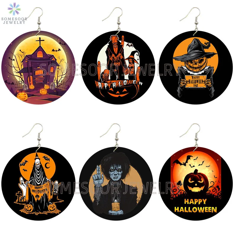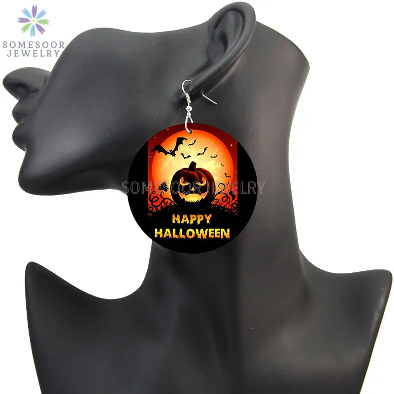 Деревянные серьги-подвески SOMESOOR на день Хэллоуина с изображением тыквы и призрака, художественные дизайнерские печатные петли, висячие украшения для девочек, подарки для детей