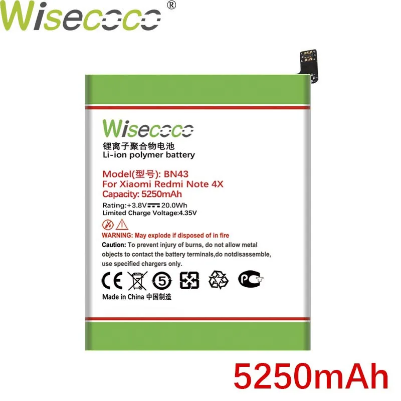 Аккумулятор WISECOCO BN43 5250 мА ч для Xiaomi Redmi Note 4X, аккумулятор в наличии, номер отслеживания