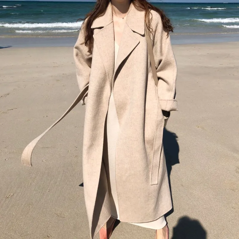 Женское длинное шерстяное пальто OMILKA, серо-бежевое длинное кашем...