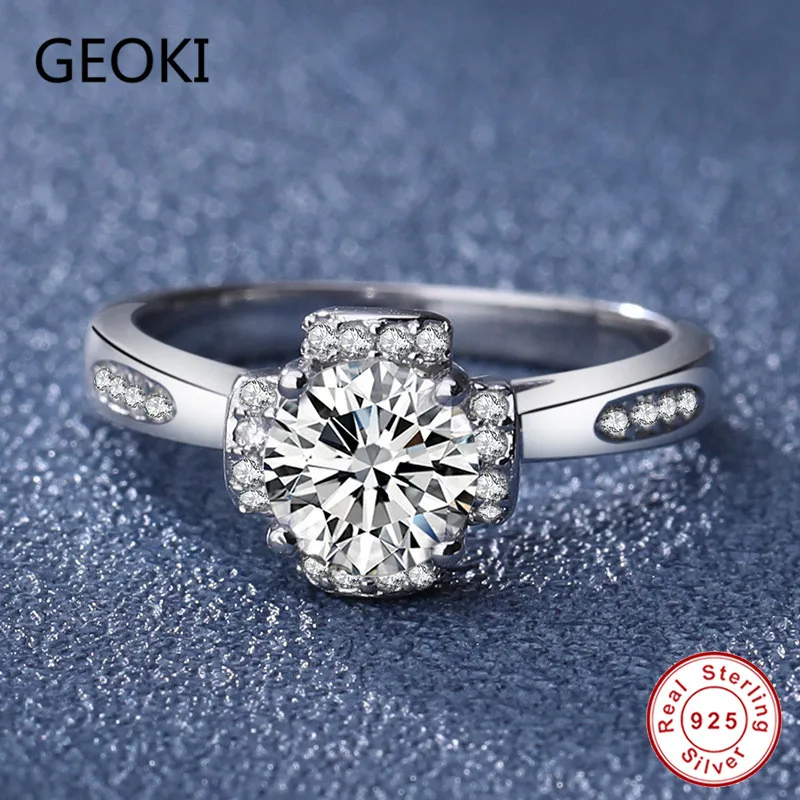 Geoki 925 пробы серебро прошел алмаз Тесты 1 Ct идеальный крой D Цв...